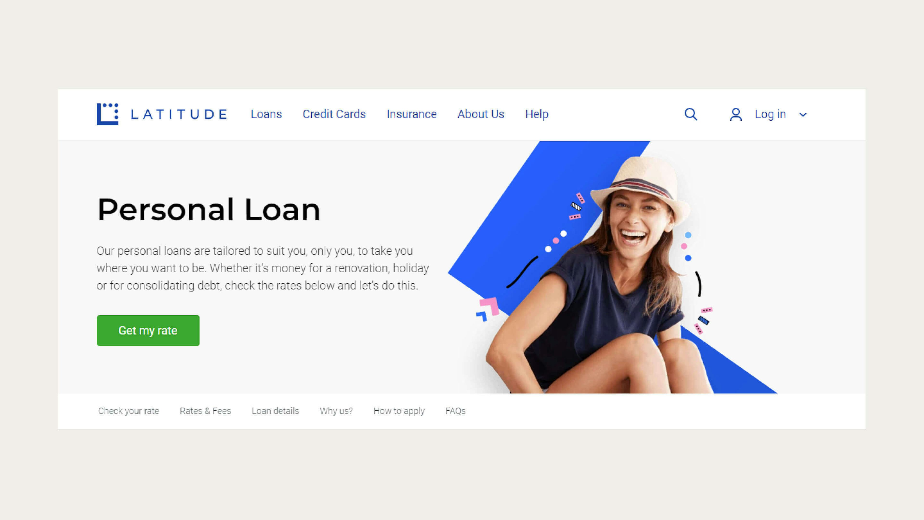 Latitude Financial's personal loan landing page may not be a particularly inspiring design, but you can see how their no-nonsense CTA button makes it very clear what the user's next step should be.