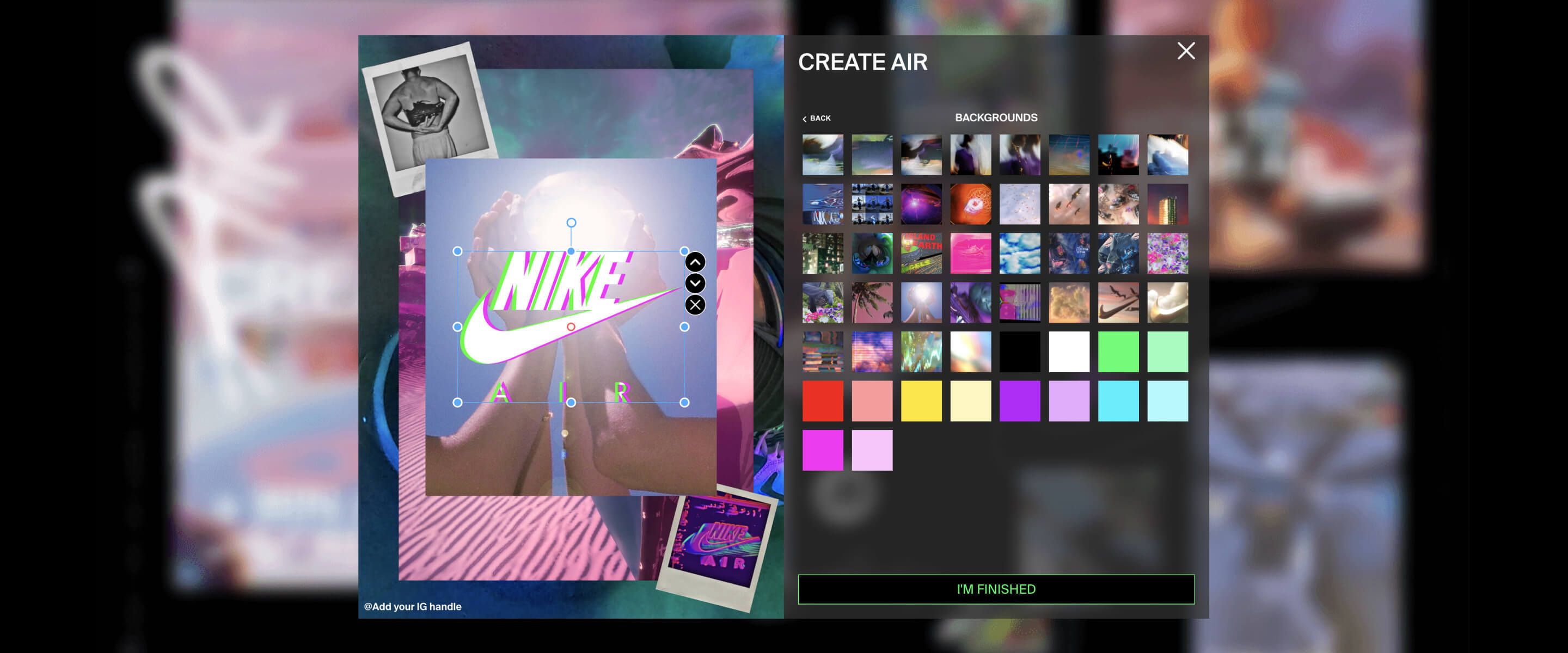 Tundra was tasked to build a digital hub to house all campaign activities. This included a sophisticated photo editing tool where users could interact and create their own Air Max campaign creative using assets from Nike and local artists.
